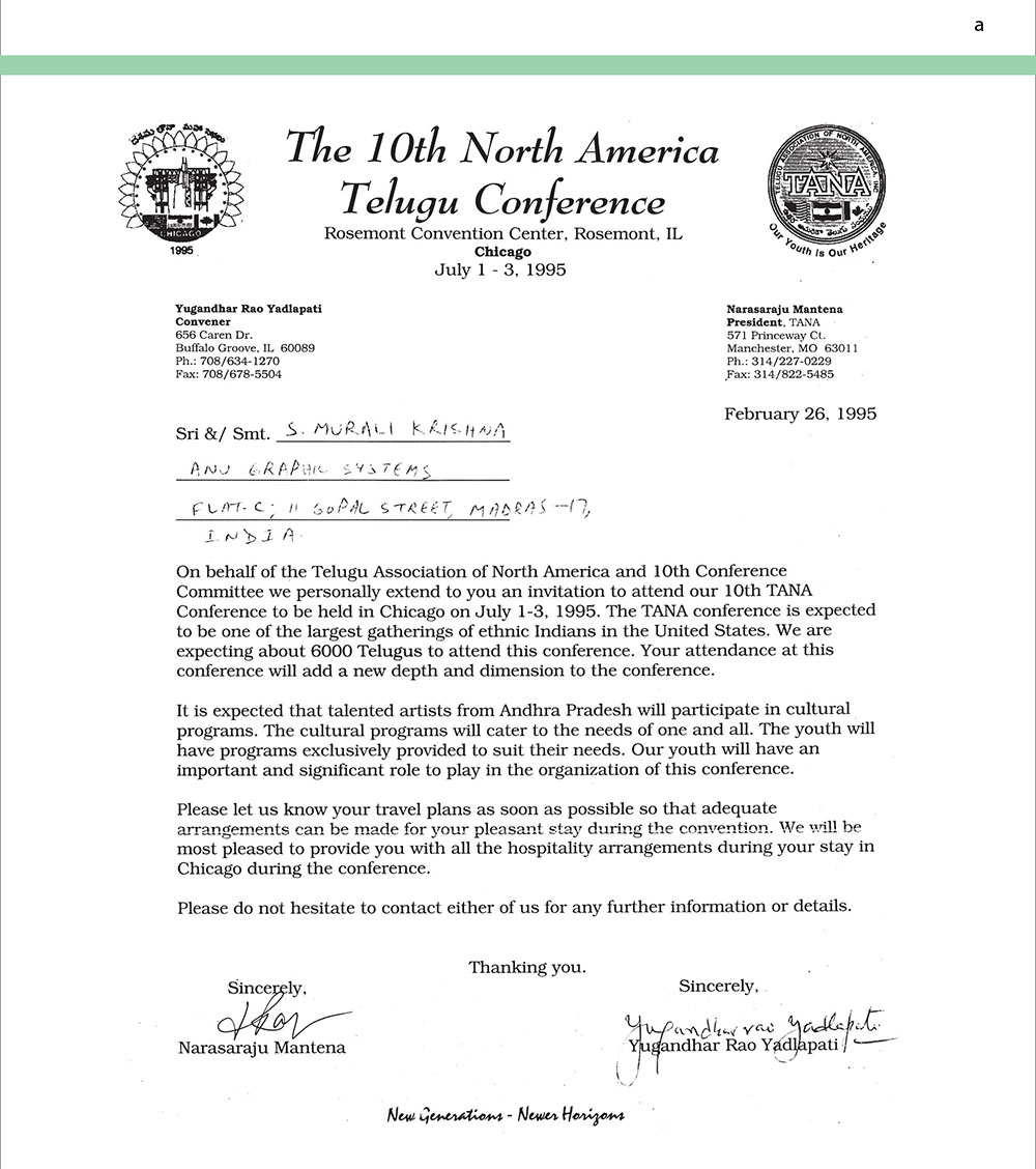 -Prasamsa Patram- to S. Murali Krishna by Palakollu-Bhimavaram-Narasapur Printers association.